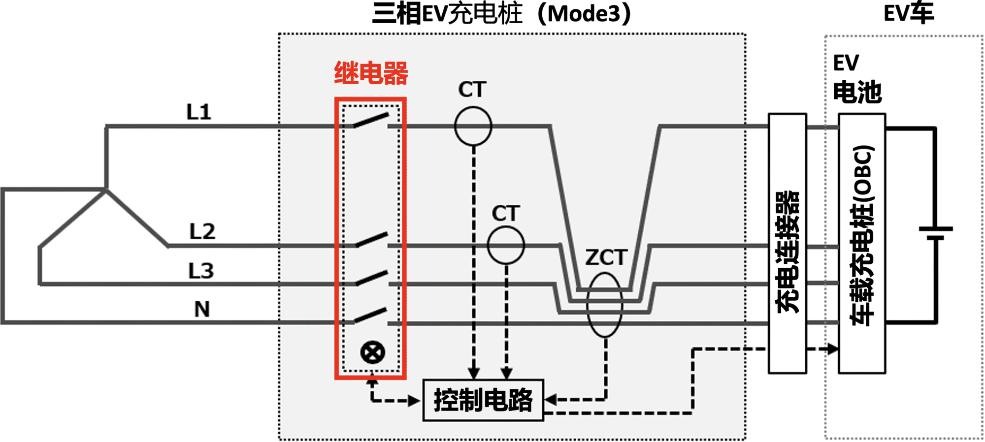 支持三相的EV充電樁可高效供給大功率充電,以面向歐洲住宅為代表,在全球范圍內的公寓住宅、商業設施及辦公場所等開始普及。為了進一步縮短充電時間,正不斷推進高功率輸出(22kW [400VAC/32A 3Φ]等)。