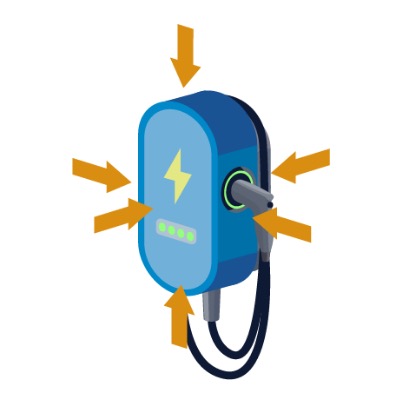 EV充電樁通常設置在戶外,為了防止浸水,原則上設備殼體為接近密閉的狀態。此外,因小型纖薄化,充電樁的殼體變小,內部溫度更容易上升。